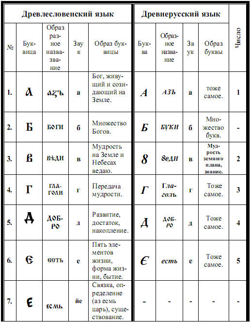 Мы можем создавать свои школы и передавать нашим детям образную писменость, традиции и культуру, полученные от наших предков!ВведениеВ этой статье мы будем изучать древнерусский язык и, в сравнении с ним, древлесловенский. Основной упор будет сделан на привитие начатков образного мышления, а не на фонетику и морфологию, как в академических учебниках по старославянскому языку. Почему так? Фонетическое прочтение древних буквиц не дает доступа к пониманию информации (смыслообраза), заложенной в читаемый текст. Ведь древние языки есть система не столько чтения, а, в основном, система изъятия сокрытого смысла из этих текстов. Непосвящённые воспринимают всё написанное буквально, а знающие «ключи», то, что зашифровано. Поэтому фонетическое прочтение - это не «ключ» к постижению глубины, а, лишь, звуковое обозначение читаемых символов, дающее нам бытийное понимание древнего текста и ничего больше. Читая фонетически, мы, как бы, скользим по поверхности информационного массива, не умея уйти на глубину. А всякое поверхностное знание считается неполным, искаженным, т.е. ложью. В понимании предков «ложь» (ложе - фонет.): находящаяся на поверхности (на ложе) - искаженная, не полная информация о чем-либо. Чтобы понимать что-то глубинно, нужно освоить не сочетание букв, не буквонаписание, а соединение образов, соединение по сути: почему это говорится так, а это иначе и какой смысл в это глаголение вложен. Мы же всё время пытаемся привязать образ к конкретным словам, понятиям. Нужно осознать, что соединяются не фонетические отображения того, что мы именуем «словом», а образы. Что эти единые образы порождают новые единые образы, которые соприкасаясь с новыми образами, порождают ещё более новые образы. Поэтому каждый образ, соединяясь с другим образом, создаёт новый образ, порождая всё новые и новые образы, которые объединяются, откликаясь на зов вашей речи, вашей мысли. Вы их призываете, и они приходят. Вы их соединяете с другими и ещё, и ещё…В результате получается система ОБРАЗОВАНИЯ – призвание образа, образо ва(я)ние, тварение, а не система обучения через натаскивание. А когда вы научились образотварению, то ваш мозг переходит на образное мышление, образное мировоззрение, образное мировосприятие. Это и будет самое правильное: нужно познать основу, чтобы понять всё остальное. И вовсе не случайно, что до 1917 года начальное обучение в обязательном порядке давало знание основ старославянского языка. С этого начиналось образование, т.е. умение соединять и понимать смысл буквиц и слов. А без этого умения (ключа), дающего доступ к древним текстам, остальное обучение почиталось безсмысленным. Русский язык был и до сих пор пока ещё остается языком образов глубинного смысла, в отличие от европейских, дающих поверхностное (в ширь) понимание передаваемой информации. В самой структуре простых слов русского языка заложены фундаментальные знания обо всем. И вспомнить их может каждый, знающий русский язык. Одно только изучение глубинного русского языка (образов) и открытое общение с родной природой способно пробудить генетическую память и избавить психику от многочисленных «зомбирующих» программ. Наш язык сохранил базовые механизмы исконной речи (образность) примерно на 30-40%. Языки других народов - на проценты и доли процента. Есть языки, практически полностью 
